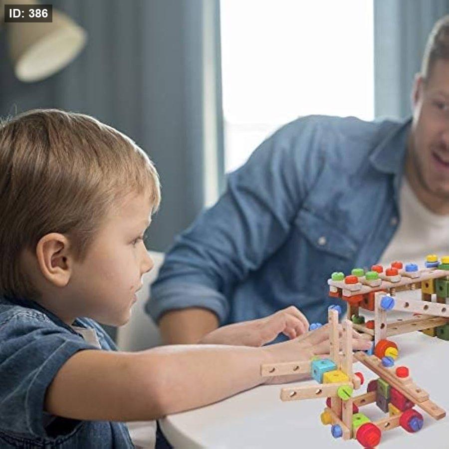 أطلق العنان لتنمية مهاراتك: إنها لعبة بناء خشبية تُنمّي البراعة والإبداع والخيال ومهارات حل المشكلات والصبر. طريقة رائعة لتدريب الطفل على التفكير الهندسي منذ الصغر. إنها المجموعة الخشبية المثالية كأول مجموعة أدوات بناء للأولاد والبنات.
