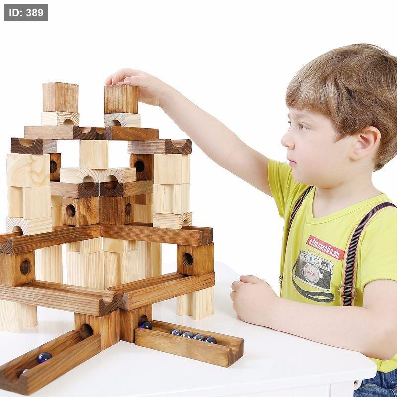 المحتويات: تتكون المجموعة من 60 قطعة، تتضمن 50 مكعبًا ومسارًا خشبيًا، و10 كرات زجاجية، ودليل بناء أساسي.