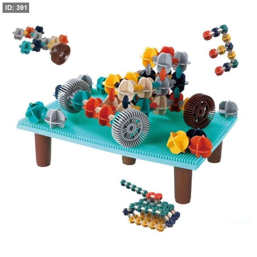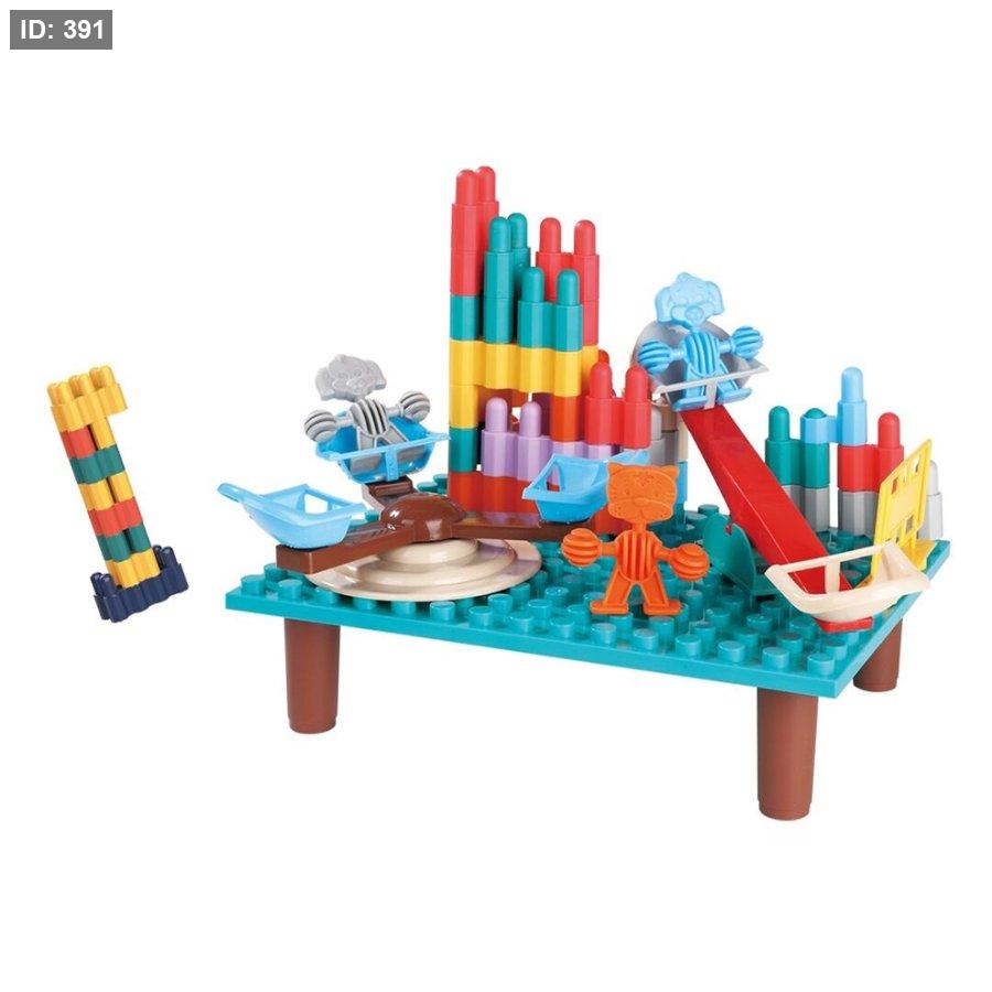 طاولة مكعبات البناء Ze Jia Toys هي مجموعة ألعاب تعليمية مصممة لمساعدة الأطفال على تطوير المهارات المعرفية الحركية والتنسيق بين اليد والعين.