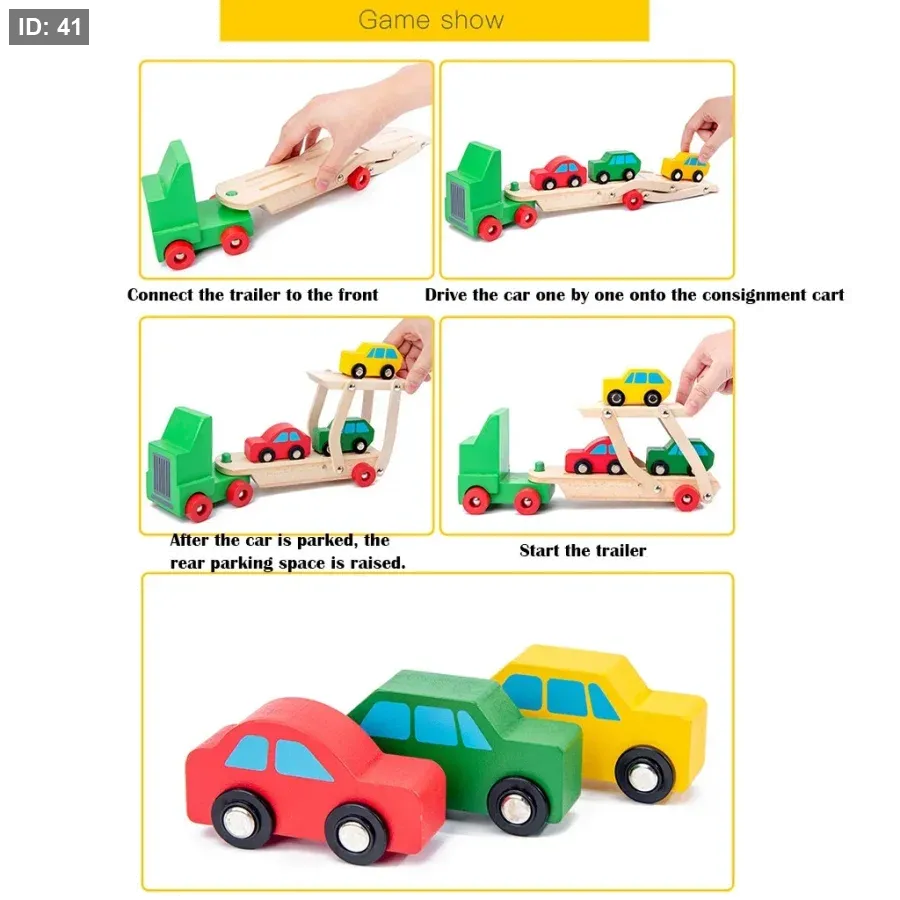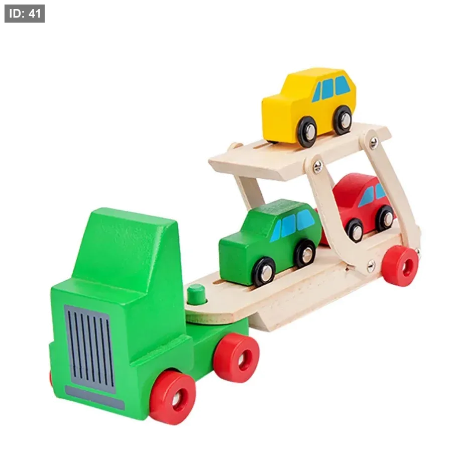 محتويات المجموعة: تتضمن المجموعة شاحنة خضراء اللون قابلة للفصل ومقطورة مزدوجة السطح، وثلاث سيارات صغيرة بألوان مختلفة (حمراء وصفراء وخضراء).