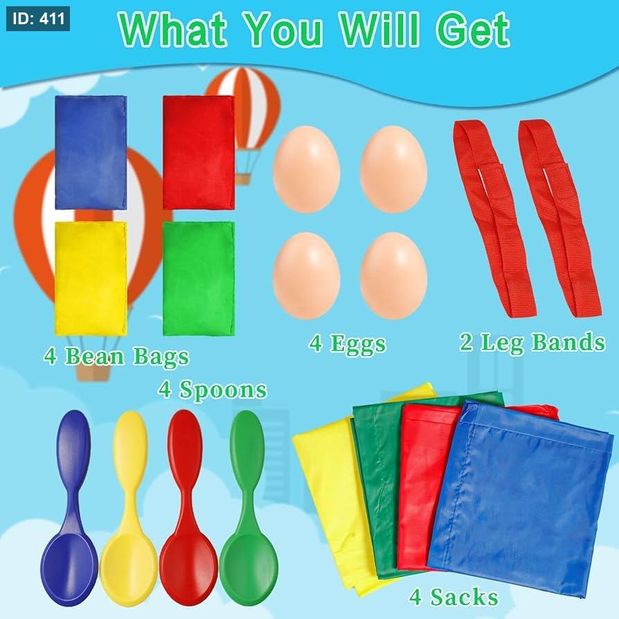 سباق البيضة والملعقة (Egg & Spoon Race): يتضمن 4 بيضات بلاستيكية و4 ملاعق.