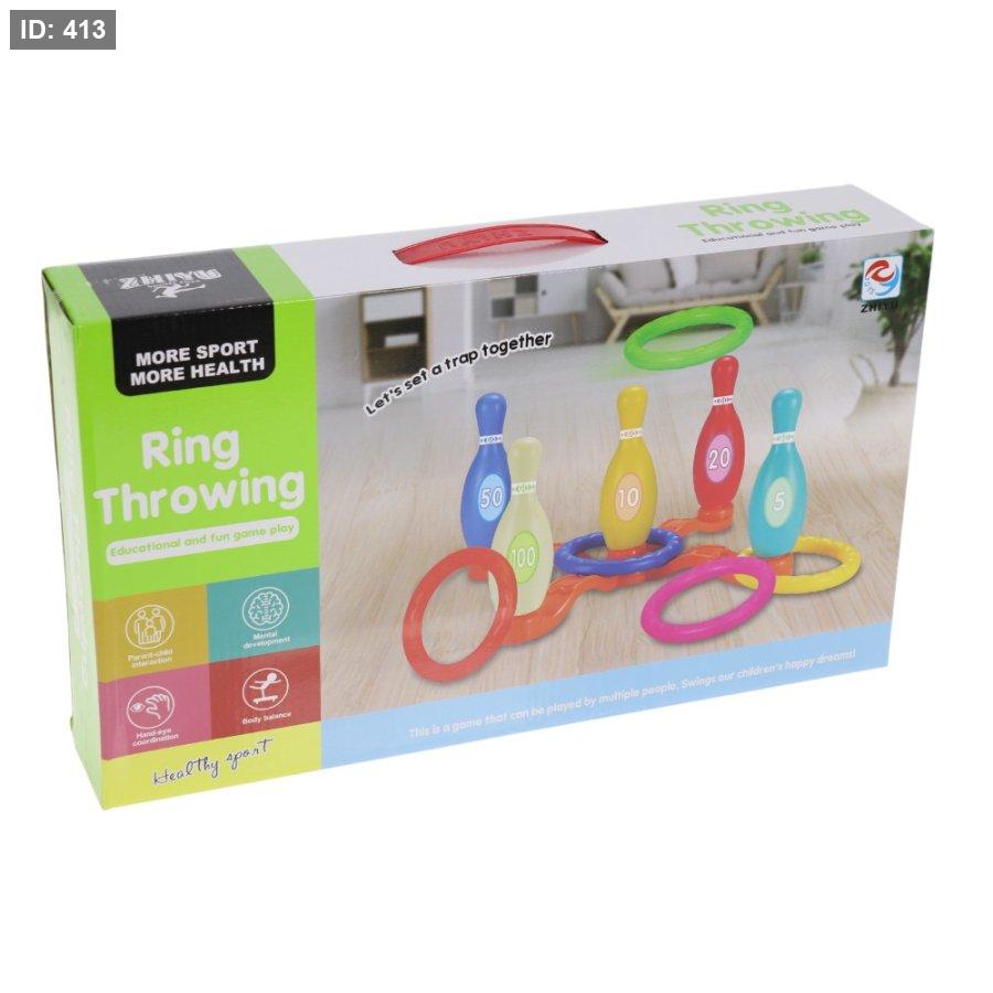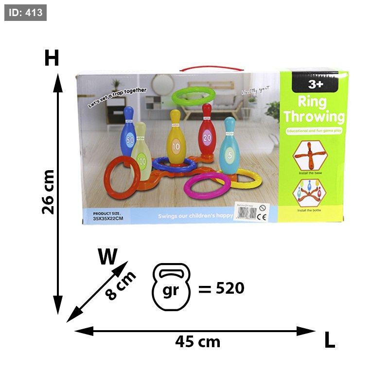 لعبة "رمي الحلقات" هي لعبة تعليمية وممتعة تهدف إلى تحسين التنسيق بين اليد والعين، التوازن الجسدي، والمهارات الحركية للأطفال. تتضمن اللعبة عادةً دبابيس بولينج ملونة مرقمة وحلقات لرميها حول الدبابيس كهدف.