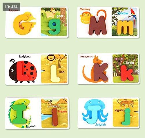 طريقة اللعب: يُطلب من الطفل مطابقة الحروف الموجودة على المكعبات مع الحروف أو الكلمات المقابلة على البطاقات المصورة. تتضمن بعض المجموعات صورًا لحيوانات أو أشياء لمساعدة الطفل على ربط الحرف بالكلمة.