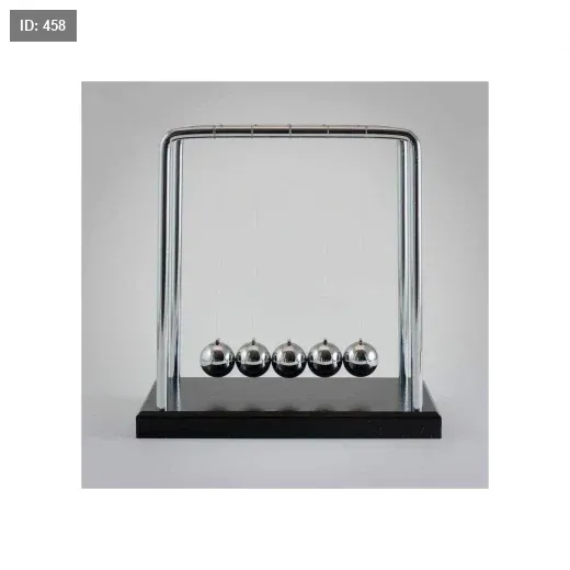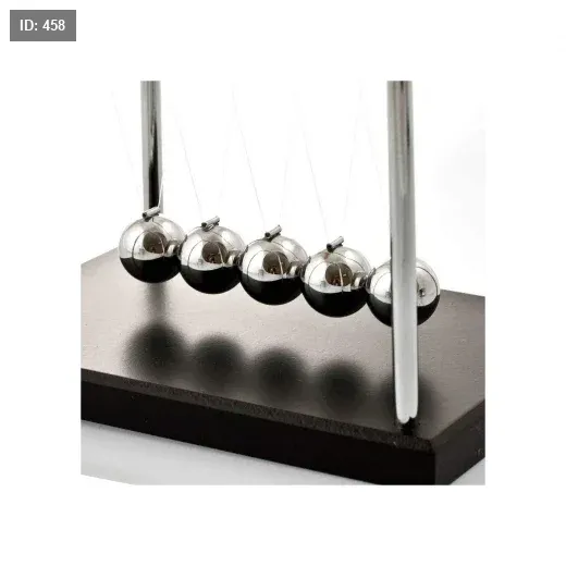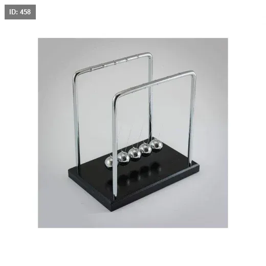 الوظيفة: يوضح الجهاز مبادئ فيزياء الحفاظ على الزخم (كمية الحركة) والطاقة. عندما تُرفع إحدى الكرات وتُترك لتتأرجح، فإنها تضرب الكرات الساكنة، وتنتقل الطاقة عبرها، مما يتسبب في تأرجح الكرة الأخيرة على الجانب الآخر.