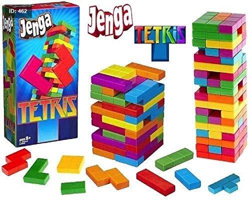 Jenga Tetris هي لعبة مهارة بدنية تجمع بين طريقة لعب Jenga الكلاسيكية وأشكال كتل Tetris الشهيرة. تتضمن اللعبة 47 كتلة ملونة بستة أشكال مختلفة، مثل تلك الموجودة في لعبة Tetris الإلكترونية.