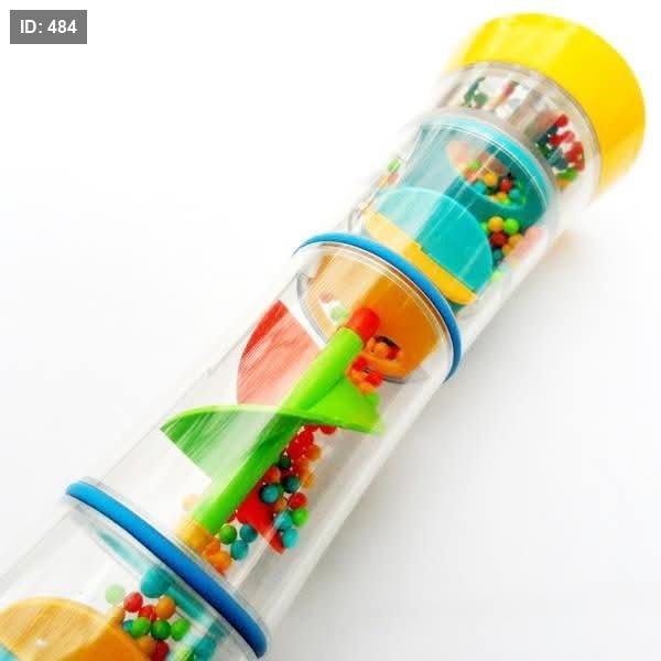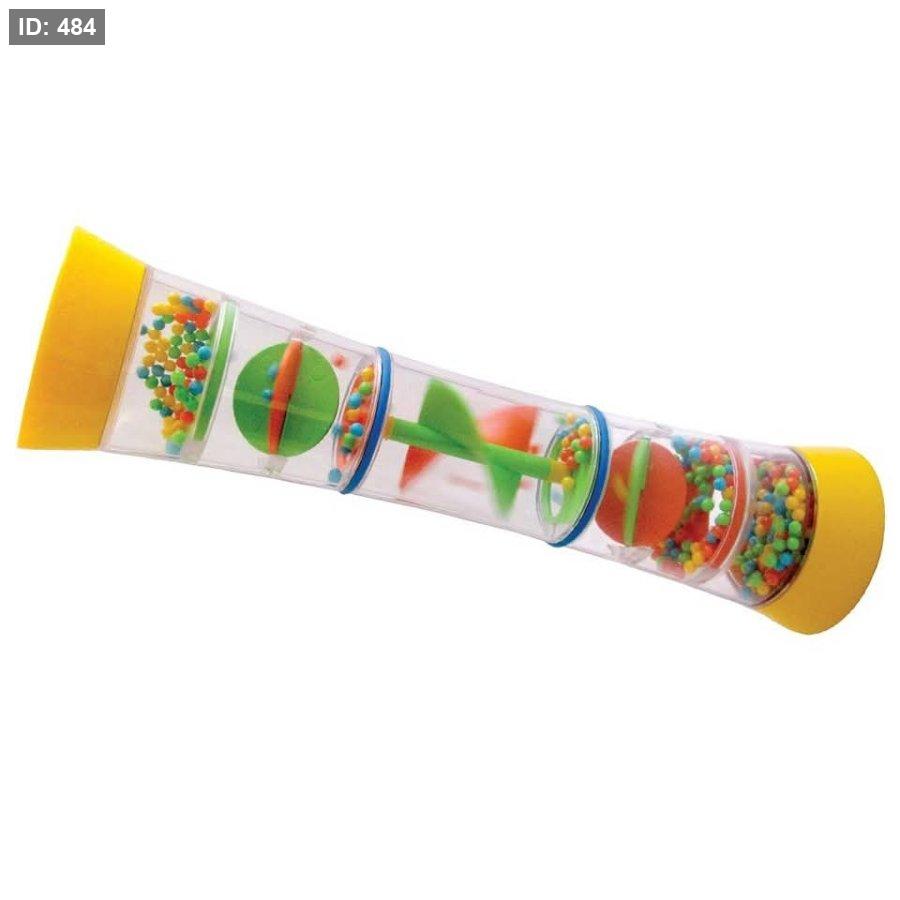 التأثير السمعي: عند تدوير اللعبة أو قلبها، تتحرك الخرزات الملونة عبر المتاهة الحلزونية وتصدر أصوات خشخشة مبهجة تشبه صوت المطر.
