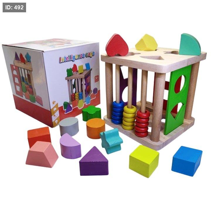 لعبة قفص الذكاء الخشبية من YINGZI هي لعبة فرز أشكال تعليمية كلاسيكية (مونتيسوري) مصممة لتنمية المهارات الحركية والتنسيق بين اليد والعين لدى الأطفال الصغار.