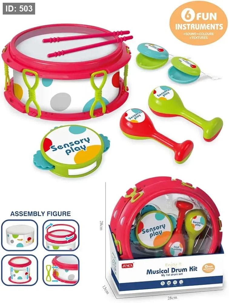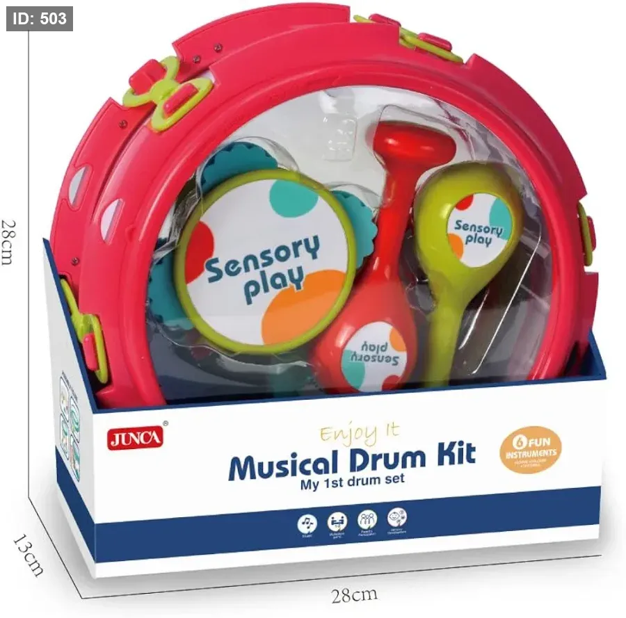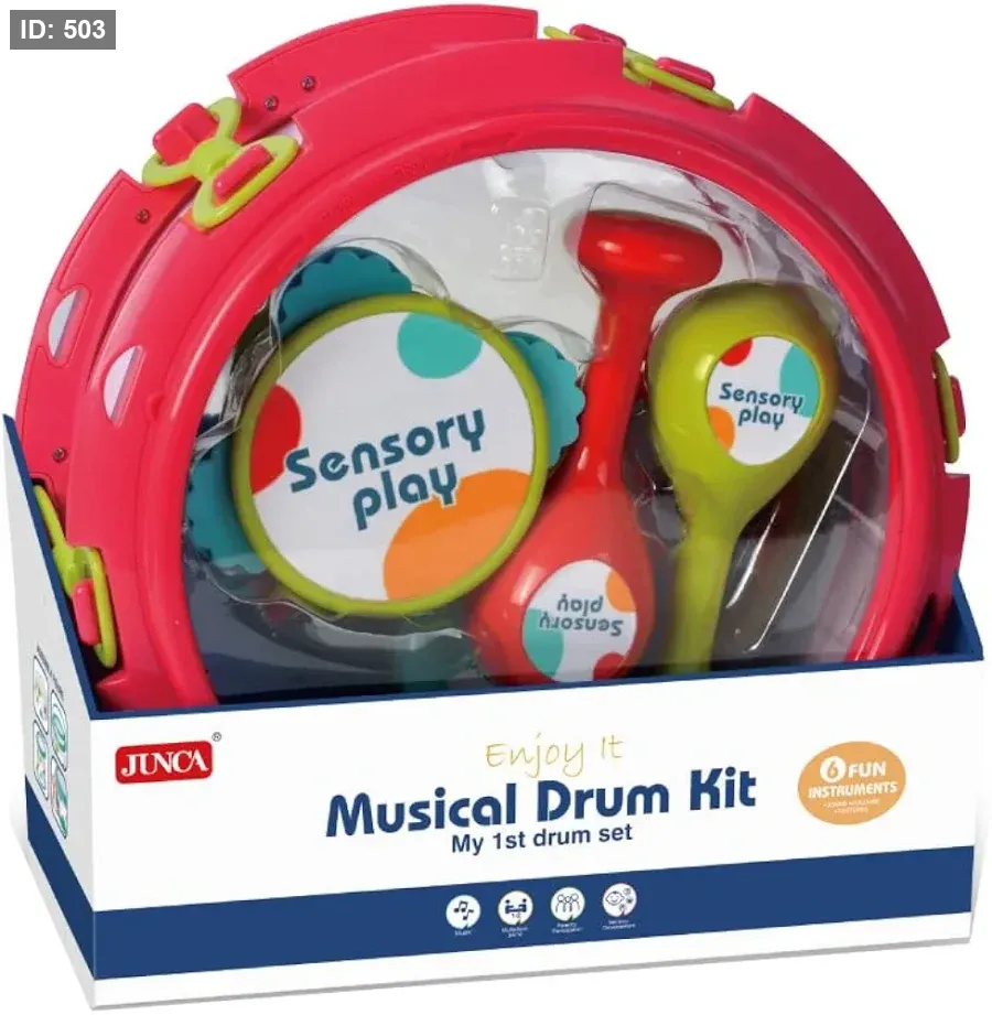 مجموعة الطبل الموسيقية My 1st drum set هي مجموعة أدوات قرع مصممة خصيصًا للأطفال الصغار، تهدف إلى تشجيع اللعب الحسي وتنمية مهارات التنسيق بين اليد والعين.