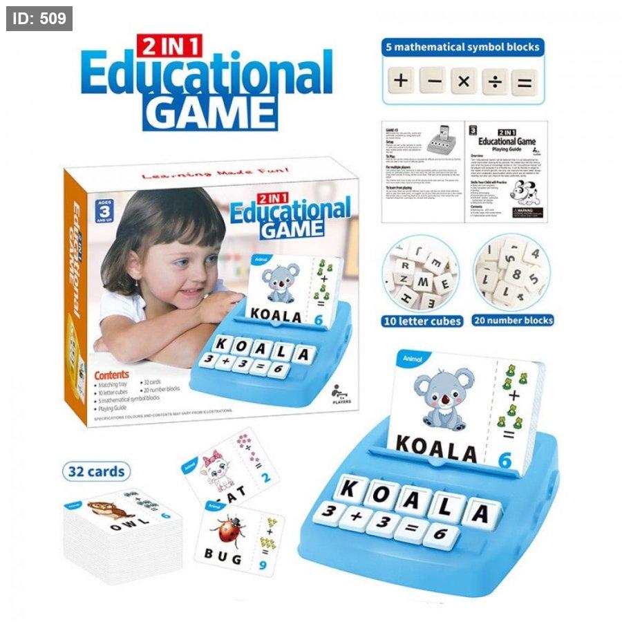 لعبة لوحية تعليمية 2 في 1 تساعد الأطفال على تعلم التهجئة والعمليات الحسابية الأساسية بطريقة ممتعة وتفاعلية.