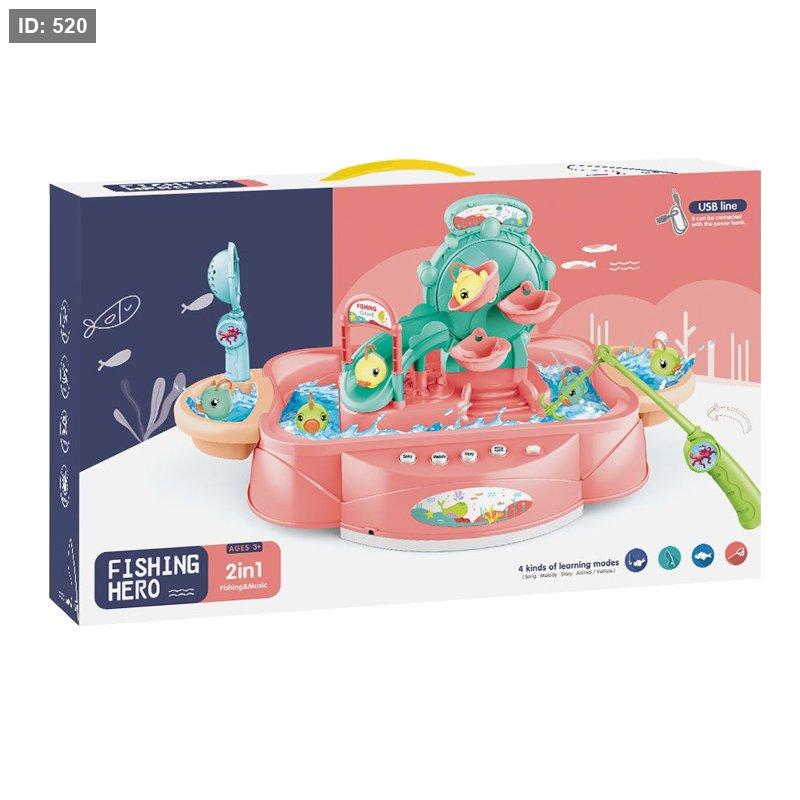 لعبة صيد الأسماك المعروضة في الصورة هي مجموعة لعب تفاعلية تُعرف باسم "Fishing Hero 3in1" (صياد السمك 3 في 1).