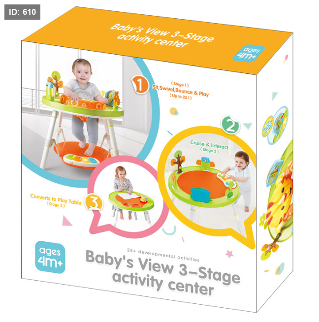 مركز أنشطة "بيبيز فيو 3 مراحل" (Baby's View 3-Stage Activity Center) هو منتج من ماركة Skip Hop. تم تصميم مركز الأنشطة هذا بالتعاون مع أطباء الأطفال لدعم نمو الطفل بالكامل، ويمكن استخدامه بثلاث طرق مختلفة: