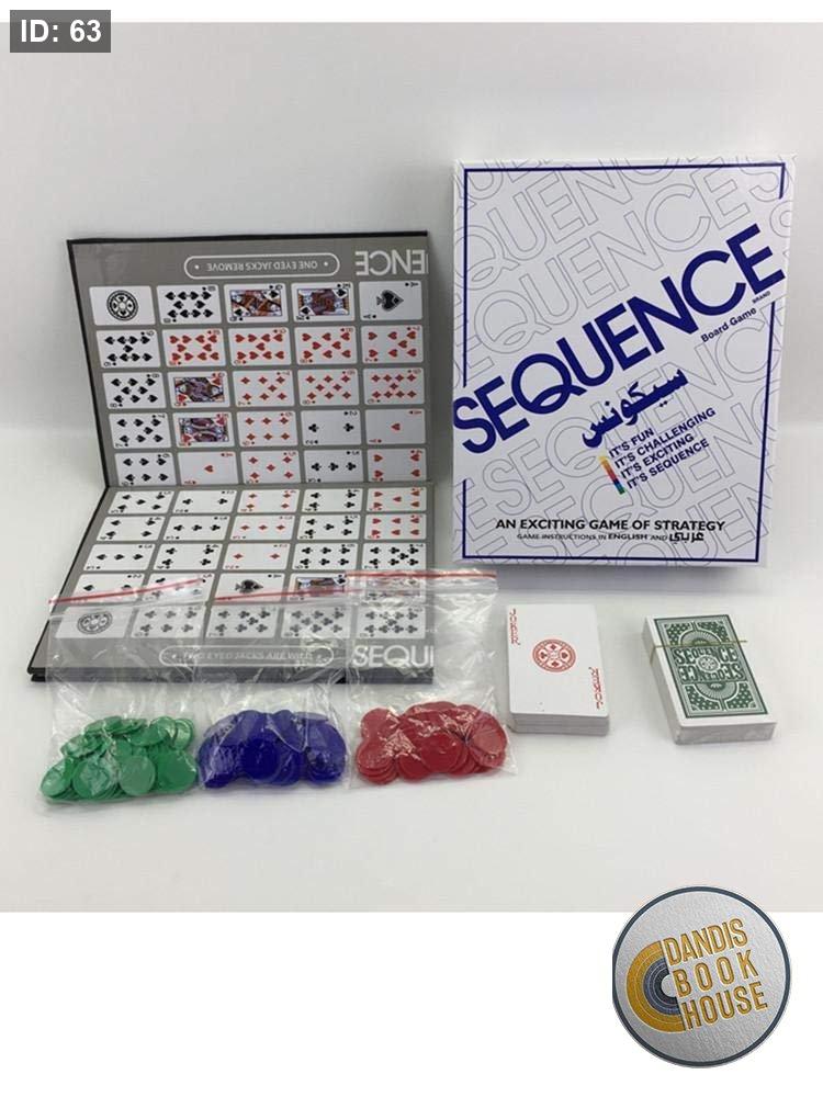 لعبة "سيكونس" (Sequence) هي لعبة لوحية استراتيجية ممتعة، تتطلب من اللاعبين تكوين صف من خمس قطع متصلة بنفس اللون (أفقي، رأسي، أو قطري) على اللوح باستخدام بطاقات اللعب، وهي مناسبة للعائلات والأصدقاء من عمر 7 سنوات وما فوق، وتساعد على تنمية التفكير الاستراتيجي والتركيز، وتتوفر بأحجام مختلفة وبإصدارات فاخرة.