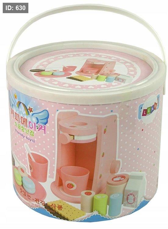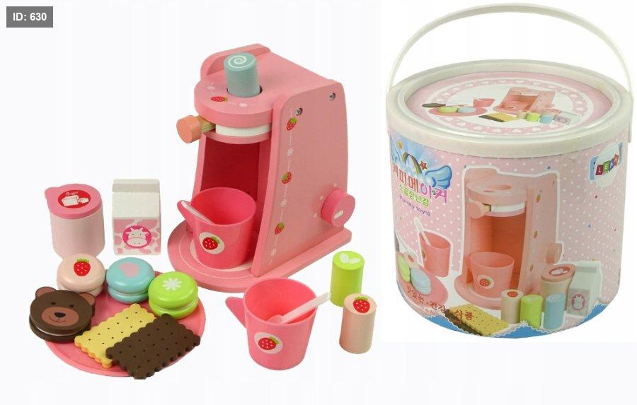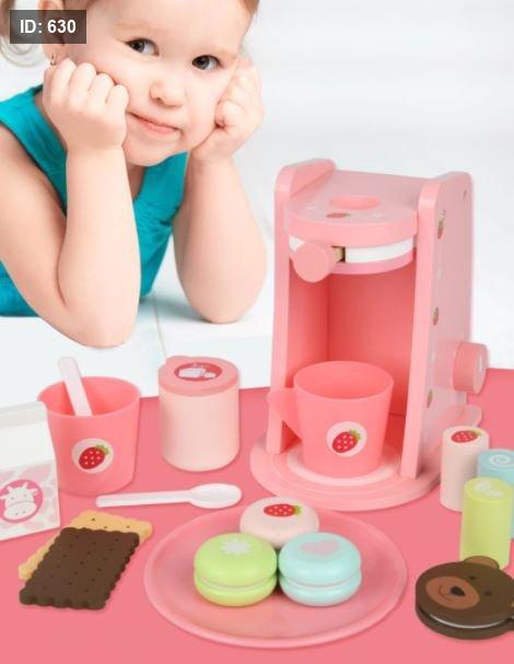 هذه مجموعة ألعاب ماكينة صنع القهوة الخشبية للأطفال.