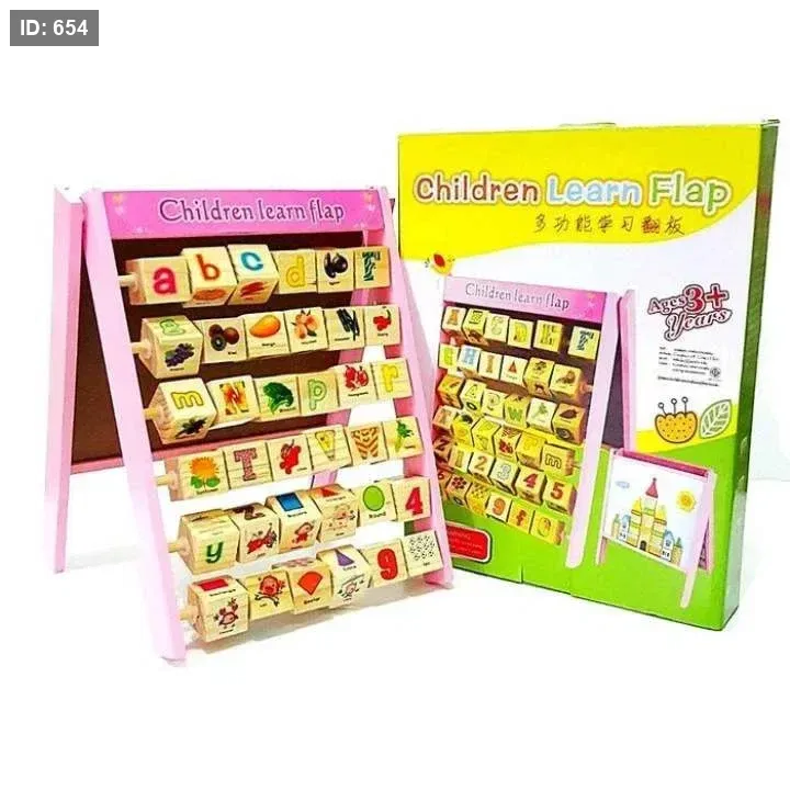 لعبة تعليمية خشبية متعددة الوظائف تُسمى "Children Learn Flap" (لوحة تعلم الأطفال القلابة).