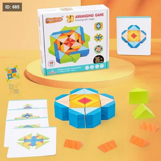 طريقة اللعب: تتضمن اللعبة تنسيق الأشكال المختلفة ووضعها في أماكنها الصحيحة باستخدام الألوان الزاهية والأشكال المتنوعة. تساعد في تنمية مهارة حل المشكلات.