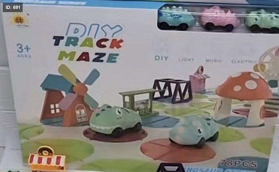 هذا هو متاهة مسار ديناصور (DIY Track Maze)، وهي لعبة بناء مسار يمكن تجميعها وتأتي مع مركبات صغيرة على شكل ديناصورات.