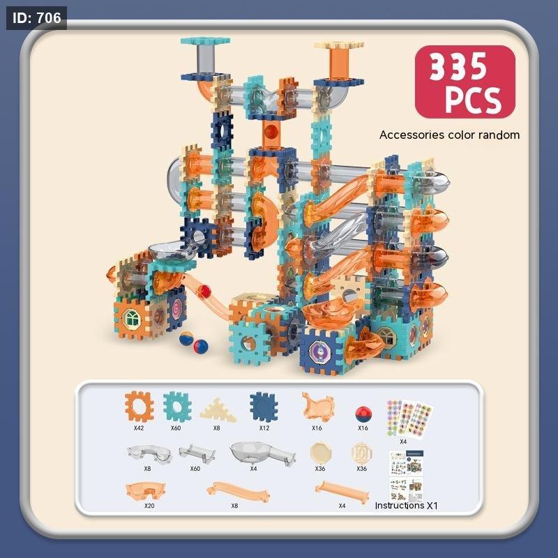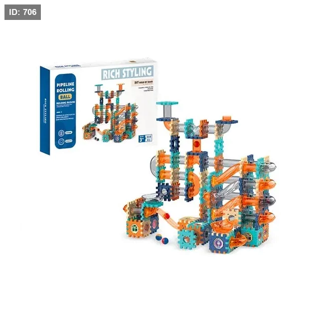 هذه مجموعة مكعبات بناء مسار كرات متدحرجة (Pipeline Rolling Ball Building Blocks).