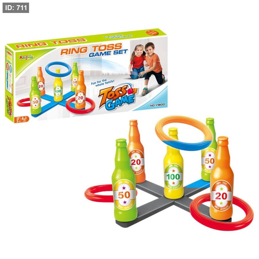 طريقة اللعب: تتكون اللعبة من قناني بلاستيكية ملونة وقاعدة متينة وحلقات خفيفة الوزن.