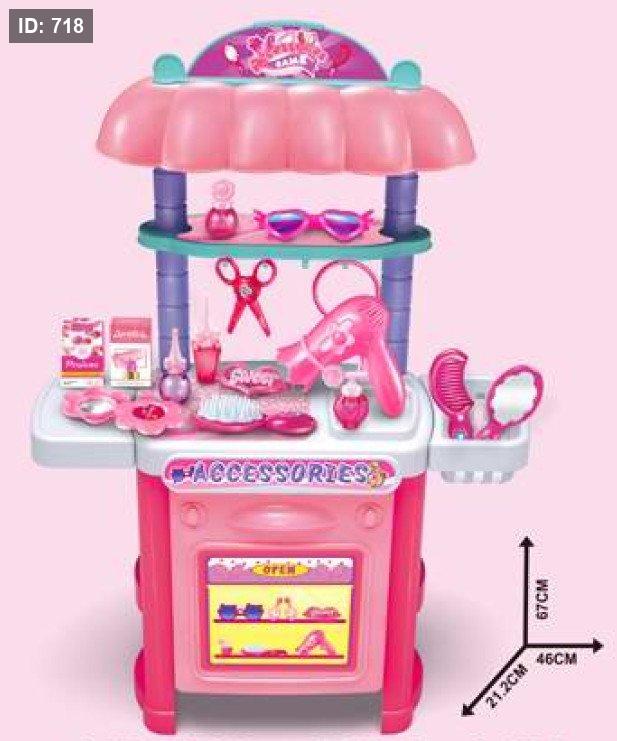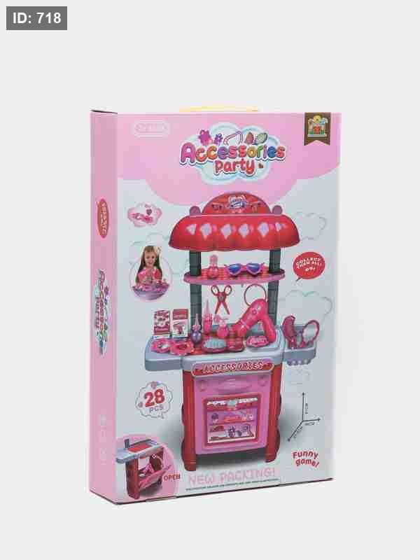 هذه مجموعة ألعاب عربة مكياج للأطفال تحمل علامة "Accessories Party" وتأتي مع الميزات والمواصفات التالية: