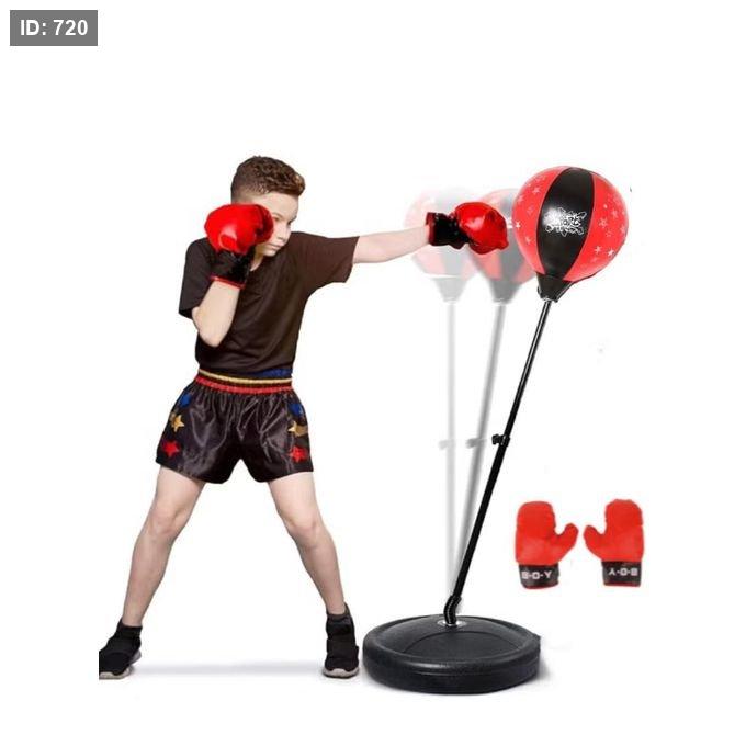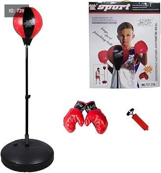 مجموعة اللعب تتكون من كرة ملاكمة على حامل قابل للتعديل وقفازين.