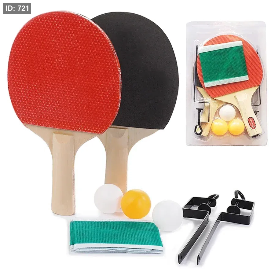 يتضمن الطقم مضربين وشبكة وكرات برتقالية.