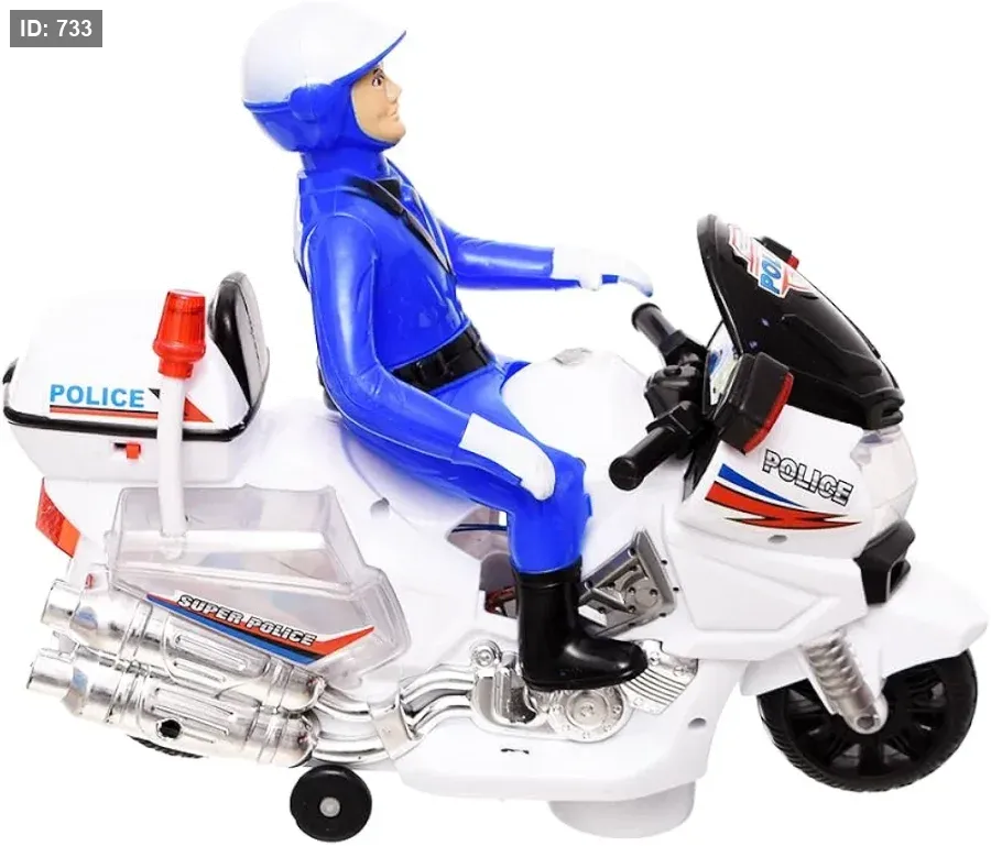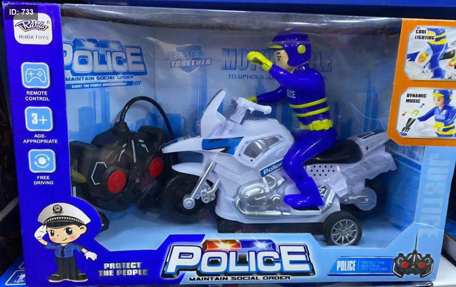 دراجة الشرطة الموجودة في الصورة هي لعبة دراجة نارية تعمل بالتحكم عن بعد من إنتاج شركة RUIDA TOYS.