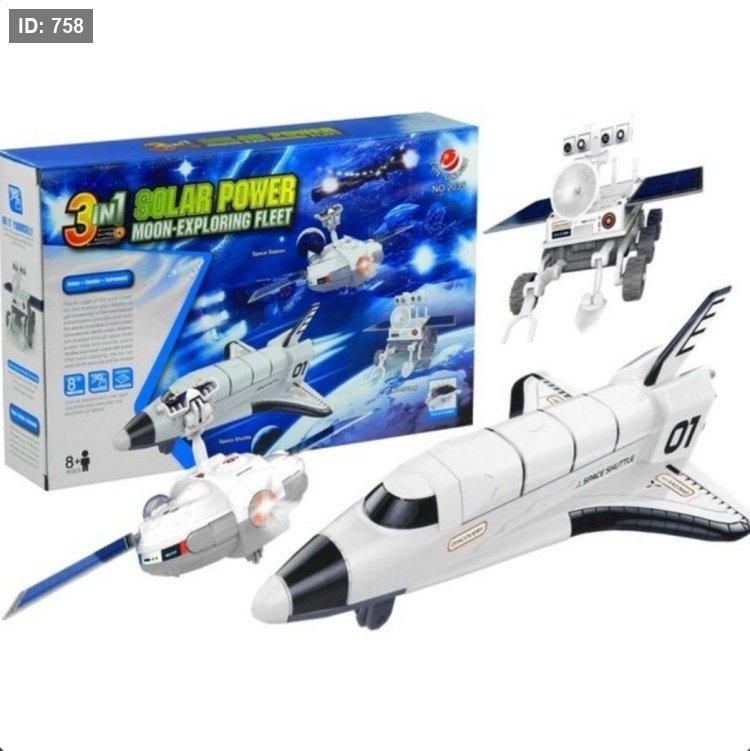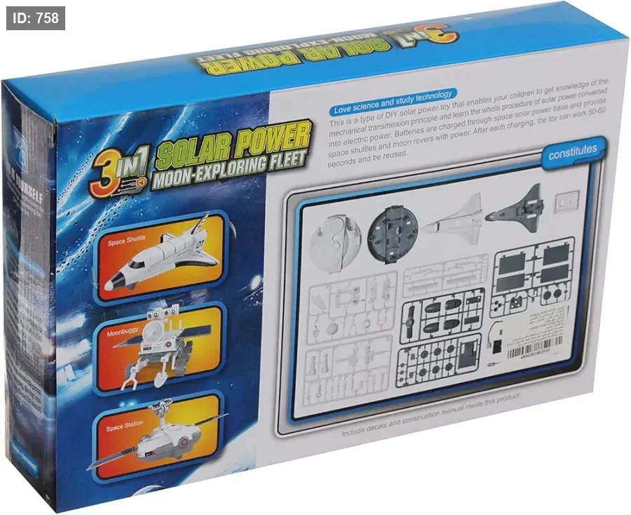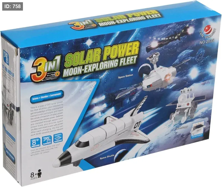 الوصف: مجموعة علمية مبتكرة تعمل بالطاقة الشمسية يمكن تجميعها في ثلاثة نماذج مختلفة لاستكشاف القمر: مكوك فضائي، وعربة قمرية (Moonbuggy)، ومحطة فضائية.
