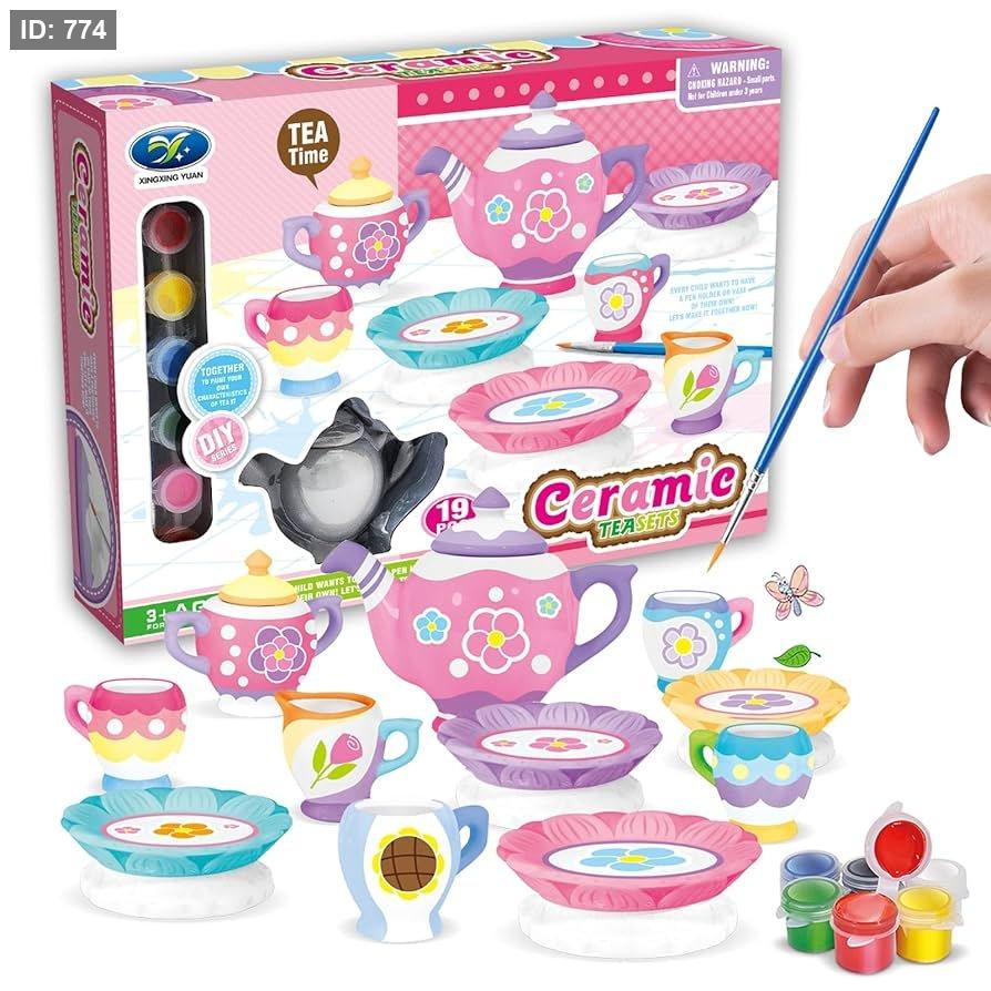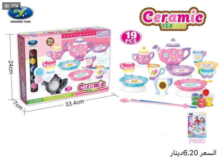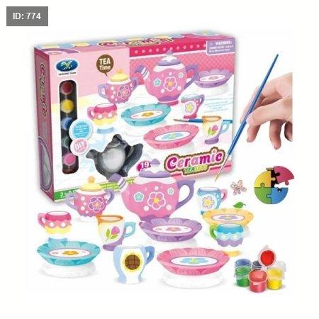 نوع المنتج: طقم تلوين شاي خزفي (سيراميك) يسمح للأطفال بطلاء وتصميم أطقم الشاي الخاصة بهم.