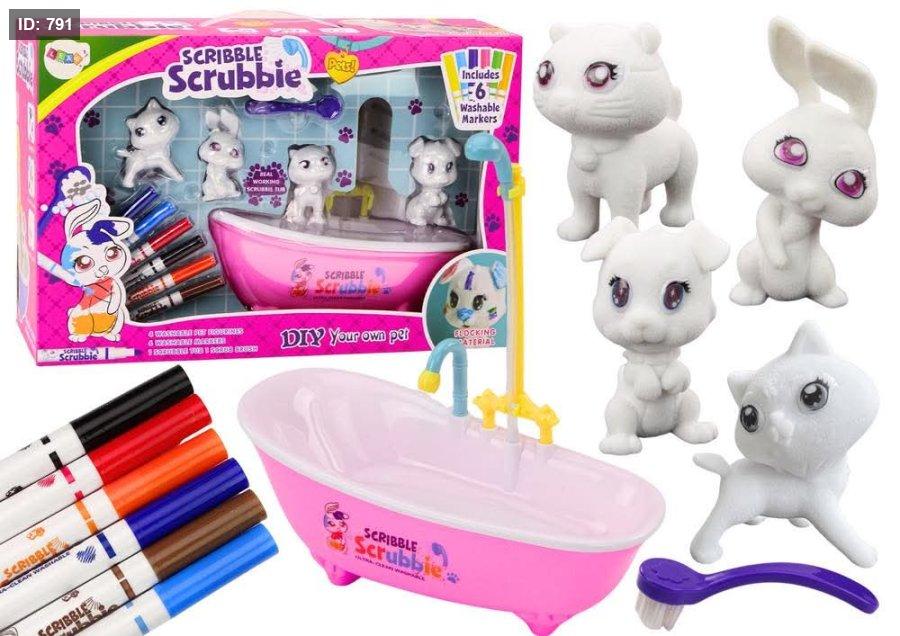 Scribble Scrubbie Pets Super Set عبارة عن مجموعة ألعاب إبداعية من Crayola. تتيح للأطفال تلوين وتخصيص شخصيات الحيوانات المحبوبة، ثم غسلها في حوض الاستحمام القابل للعمل والبدء من جديد.