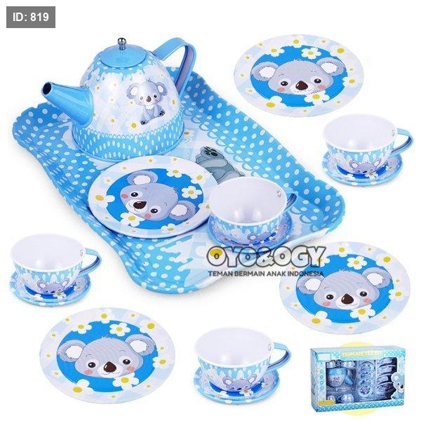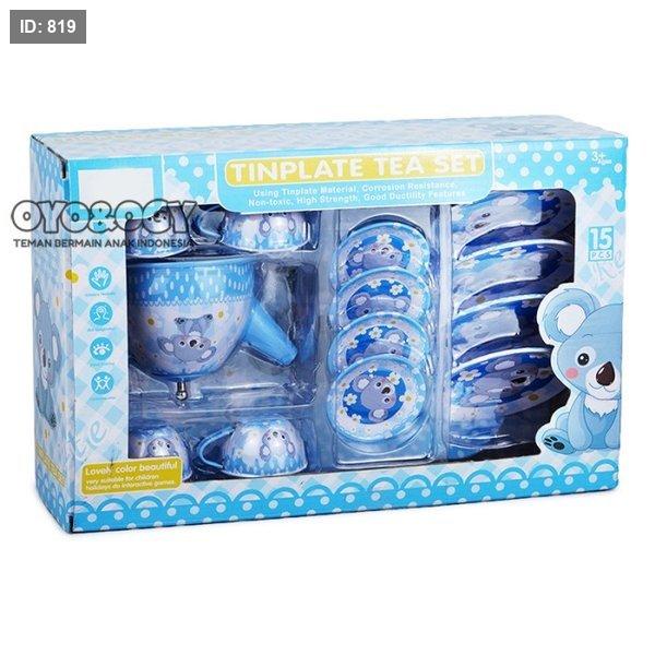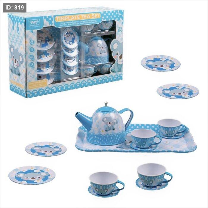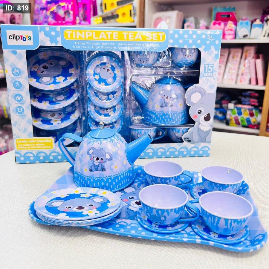 طقم الشاي المعروض هو مجموعة لعب للأطفال مصنوعة من الصفيح (Tinplate Tea Set)، وتحديداً من علامة تجارية تُدعى Cliptos.