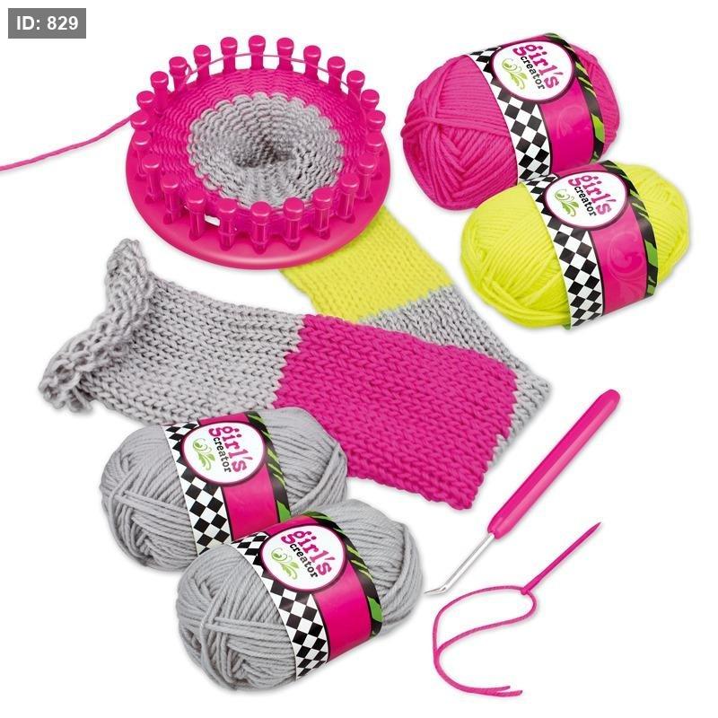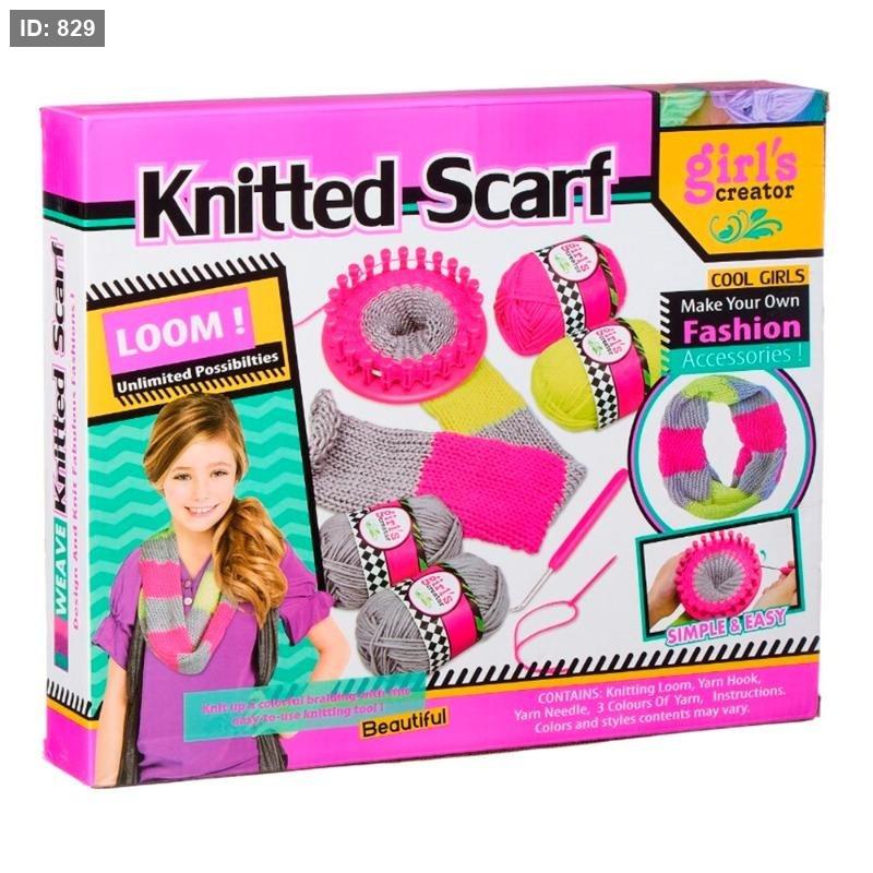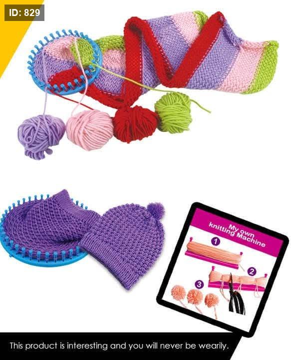 أداة حياكة يدوية للأطفال متاحة للشراء عبر الإنترنت. وهي مصممة لمساعدة الأطفال الذين تزيد أعمارهم عن 6 سنوات على تعلم الحياكة وصنع إكسسوارات مثل الأوشحة والقبعات.