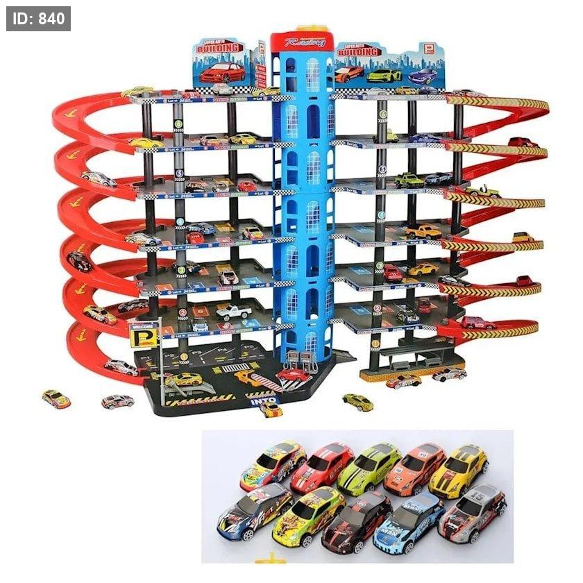 هذا موقف سيارات لعبة كبير (Large Parking Lot) من "سوبر أوتو بيلدينغ" (Super Auto Building). تشمل ميزاته الرئيسية ما يلي: