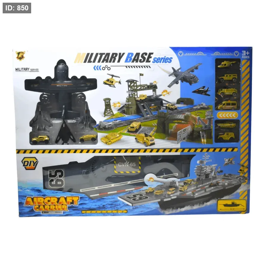 مجموعة ألعاب قاعدة عسكرية تحمل اسم "MILITARY BASE series". تتضمن المجموعة تشكيلة من المركبات العسكرية الصغيرة، وطائرات (بما في ذلك طائرة مقاتلة وطائرة هليكوبتر)، وقاعدة عمليات مع برج مراقبة وحظائر، وحتى حاملة طائرات في الجزء السفلي من العبوة.