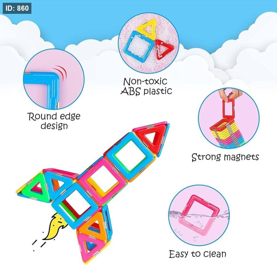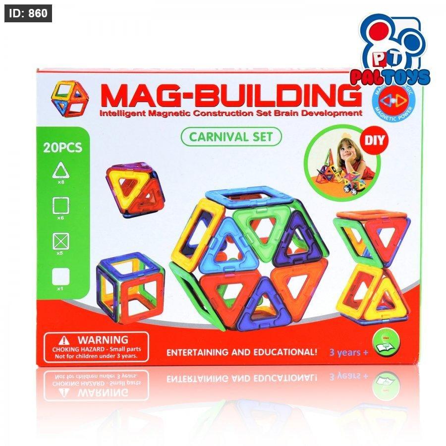 تُظهر الصورة مجموعة ألعاب بناء مغناطيسية تسمى "Mag-Building Carnival Set".