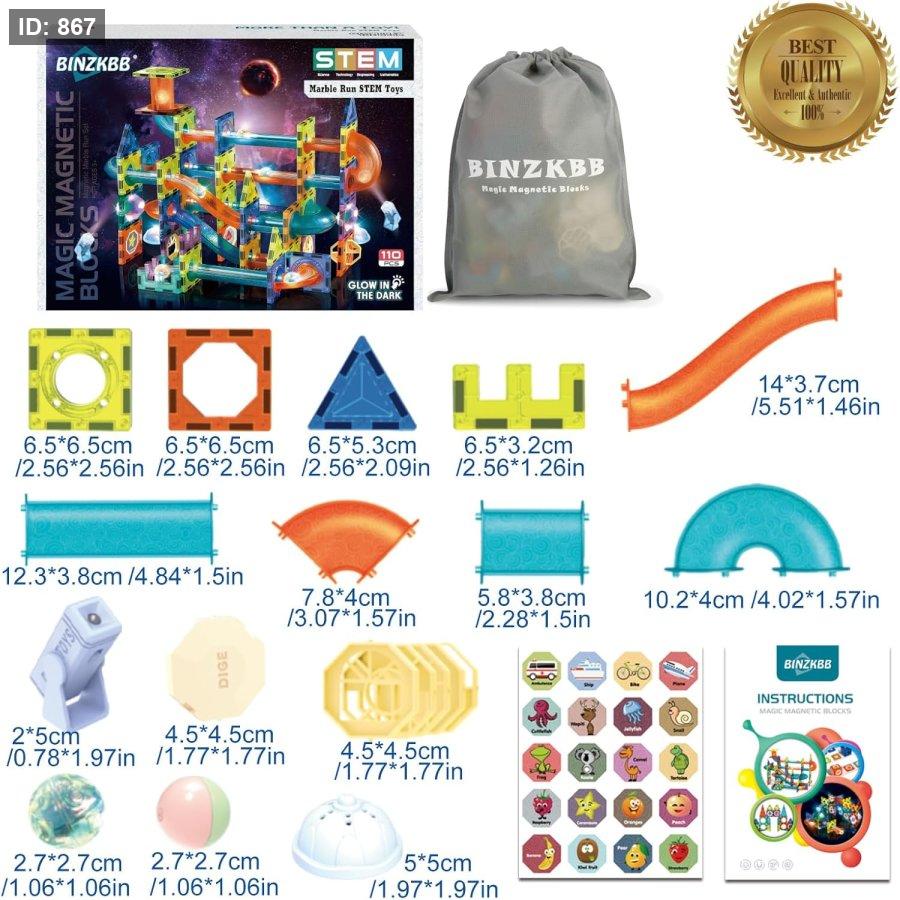 مجموعة مكعبات مغناطيسية مضيئة لمسار الكرات (Light Magnetic Blocks Magnetic Marble Run Set) من علامة DIGE.