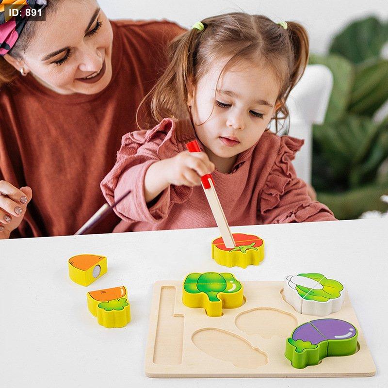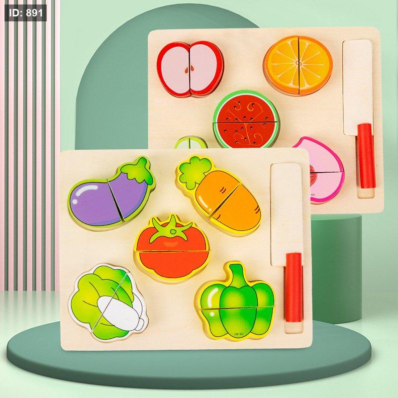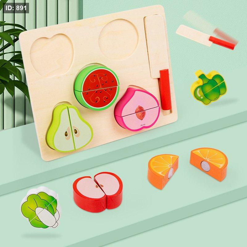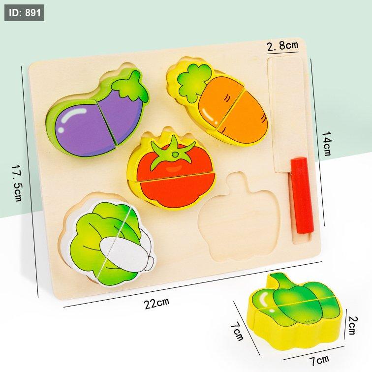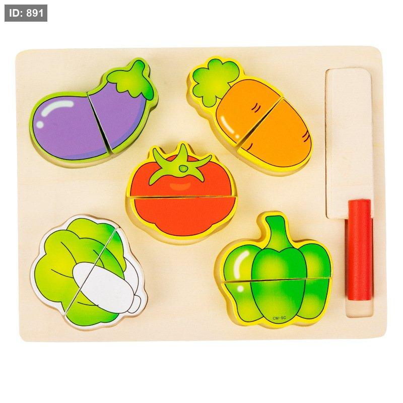مجموعة ألعاب خشبية لتقطيع الخضروات. تتكون المجموعة عادةً من خضروات مقسومة إلى نصفين ومتصلة بشريط فيلكرو، بالإضافة إلى سكين ولوح تقطيع خشبي.