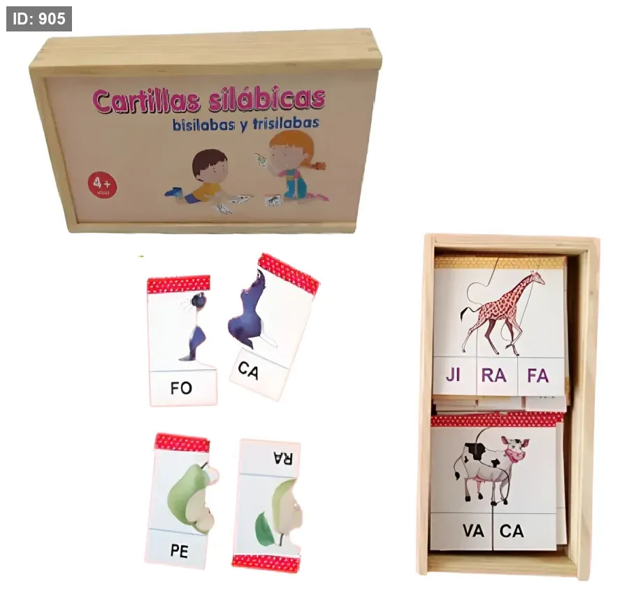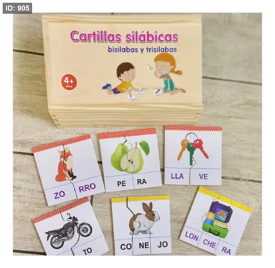 هذه لعبة تعليمية تسمى "كارتياس سيلابيكاس" (Cartillas Silábicas). وهي مصممة لمساعدة الأطفال على تعلم القراءة والكتابة من خلال تشكيل كلمات من مقاطع لفظية ثنائية (bisílabas) وثلاثية (trisílabas).