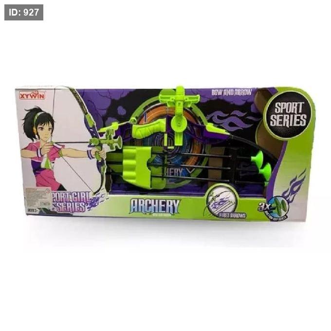 لعبة القوس والسهم المعروضة في الصورة هي مجموعة ألعاب للأطفال تسمى "Sport Girl Series Archery Bow and Arrow". هذه اللعبة مصممة للأعمار 3 سنوات فما فوق.