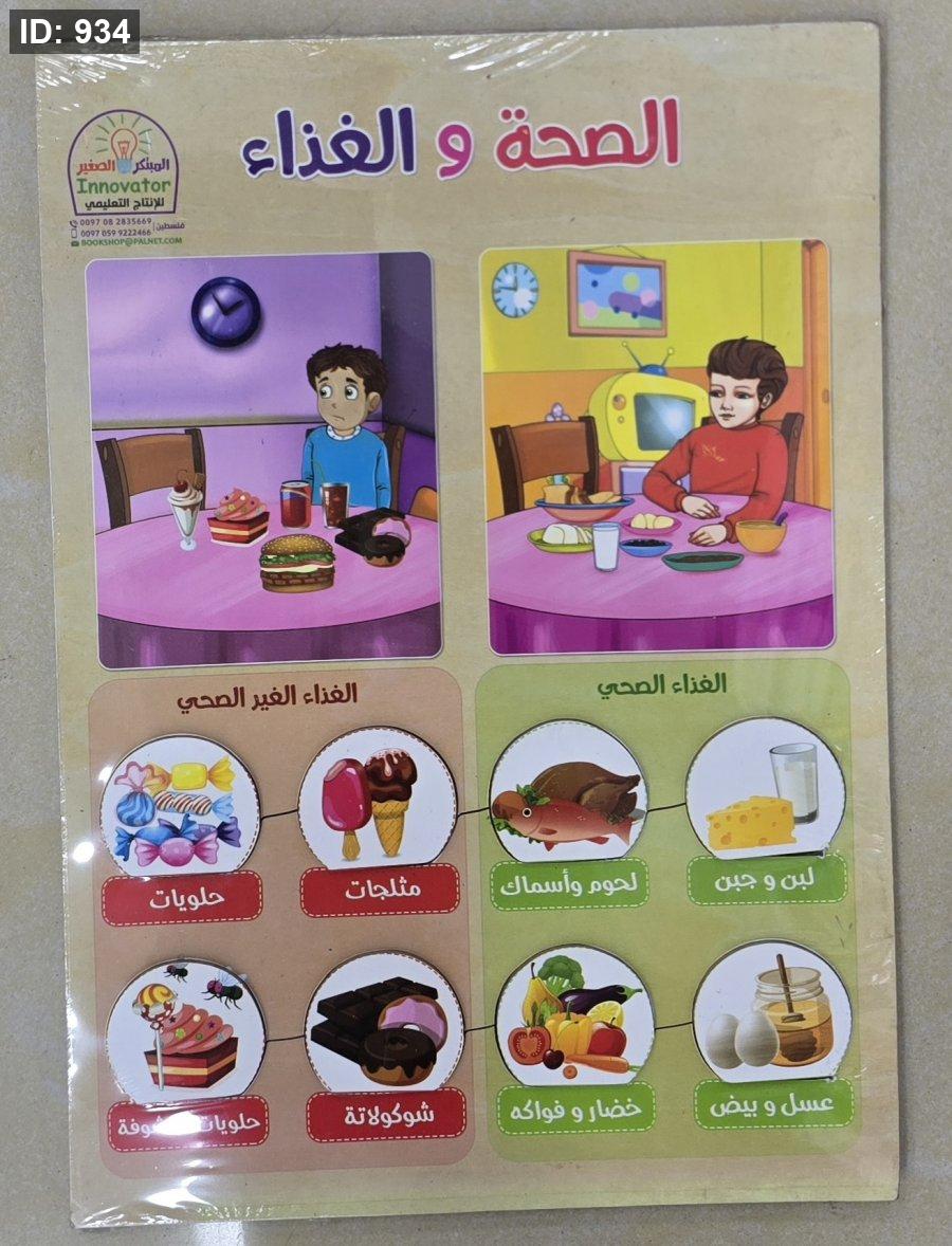 لوحة "الصحة والغذاء" التعليمية هي منتج تعليمي يهدف إلى تعليم الأطفال التمييز بين الأطعمة الصحية وغير الصحية. تم إنتاج هذه اللوحة بواسطة "المبتكر الصغير Innovator للإنتاج التعليمي"، وتستخدم الرسوم التوضيحية لتقديم المعلومات بطريقة شيقة ومناسبة للأطفال.