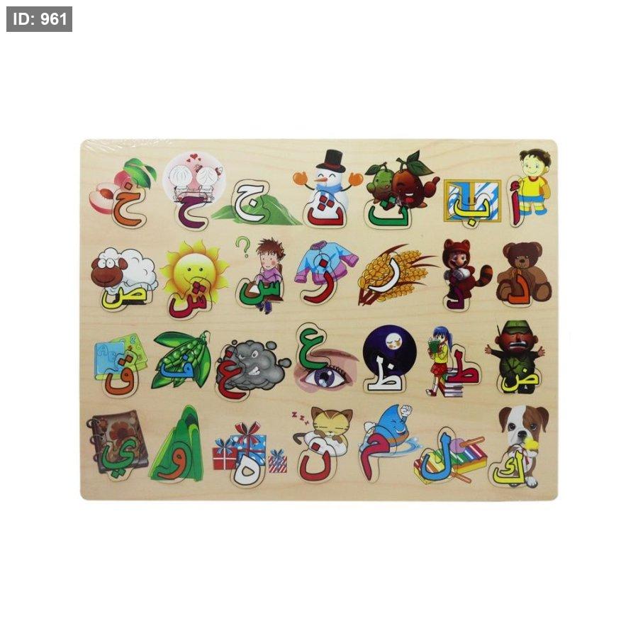 لغز خشبي تعليمي يهدف إلى تعليم الأطفال الحروف الأبجدية العربية. يحتوي كل حرف على صورة لشيء يبدأ بهذا الحرف لمساعدة الطفل على ربط الحرف بالكلمة والصورة. تساعد هذه الألغاز في تنمية المهارات اللغوية والإدراكية لدى الأطفال، بالإضافة إلى التنسيق بين اليد والعين.