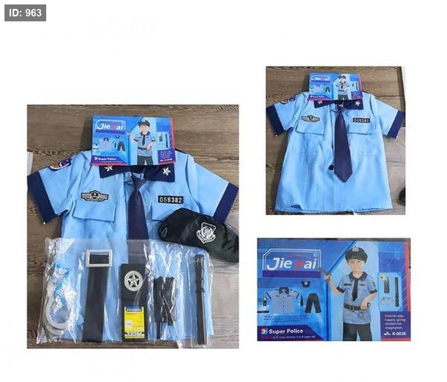 المنتج: الزي عبارة عن سترة زرقاء فاتحة مع تفاصيل داكنة اللون تحمل علامة "Super Police".