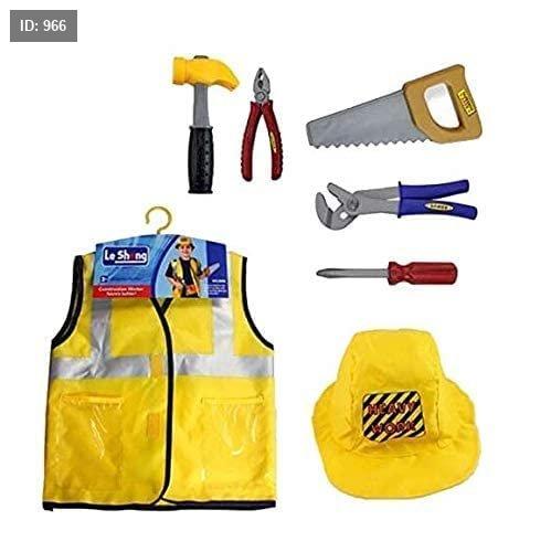 يشمل سترة صفراء عاكسة، وقبعة صلبة، وحزام أدوات، ومجموعة من أدوات اللعب البلاستيكية.