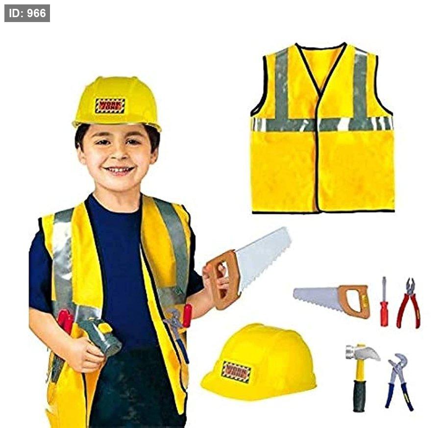 هذا طقم زي عامل بناء للأطفال، ويحتوي على الأدوات الرئيسية التالية: