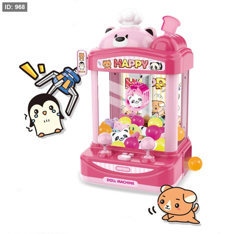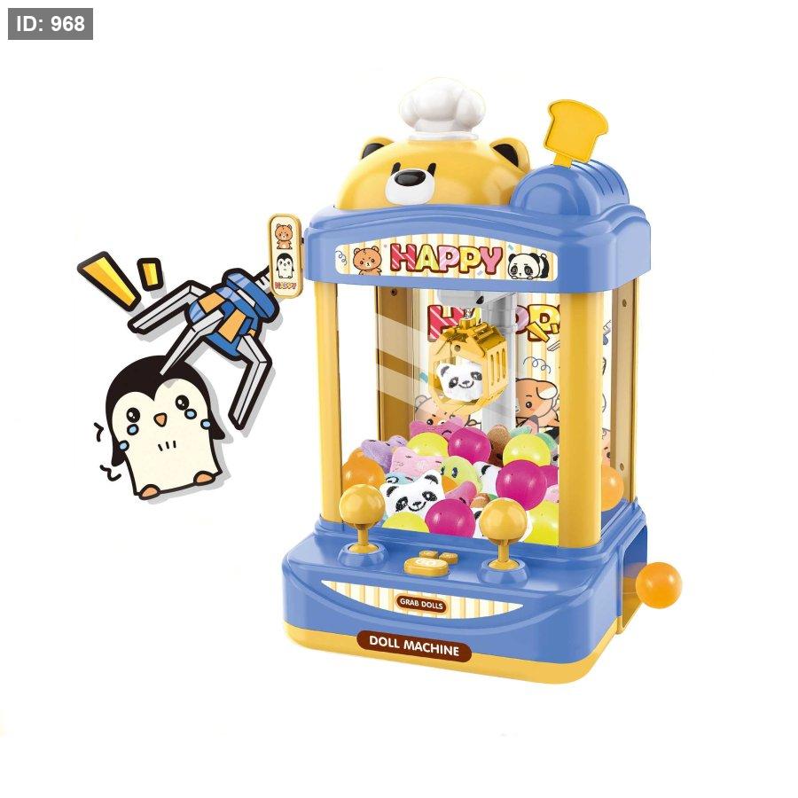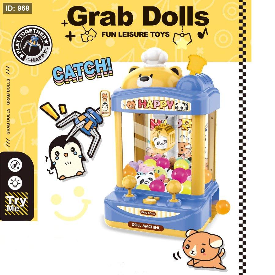 آلة مخلب مصغرة هي لعبة أروقة إلكترونية شائعة للأطفال تتيح لهم محاكاة تجربة التقاط الدمى في المنزل. تحمل العبوة أسماء تجارية مثل "Grab Dolls" و"Happy Together".