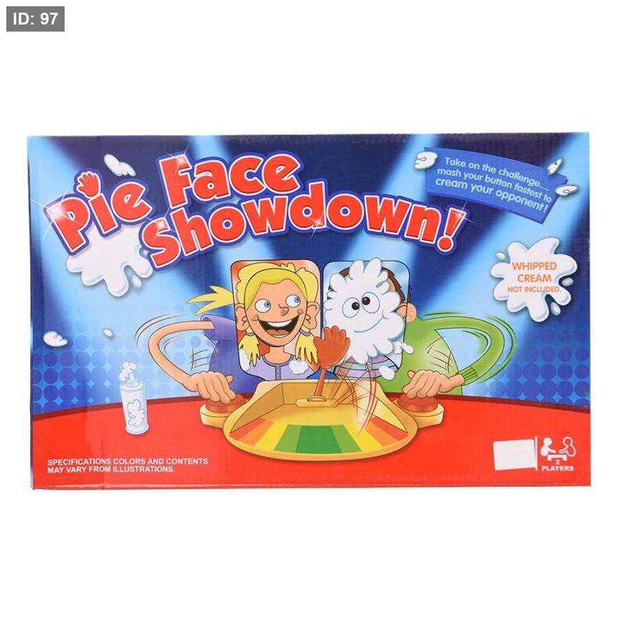 لعبة "Pie Face Showdown!" هي لعبة لوحية مرحة وسريعة الوتيرة من إنتاج شركة هاسبرو (Hasbro Gaming). تتضمن اللعبة تحديًا مباشرًا بين لاعبين لمعرفة من سيتلقى "فطيرة" من الكريمة المخفوقة (غير متضمنة) أو الإسفنجة المبللة المتوفرة.